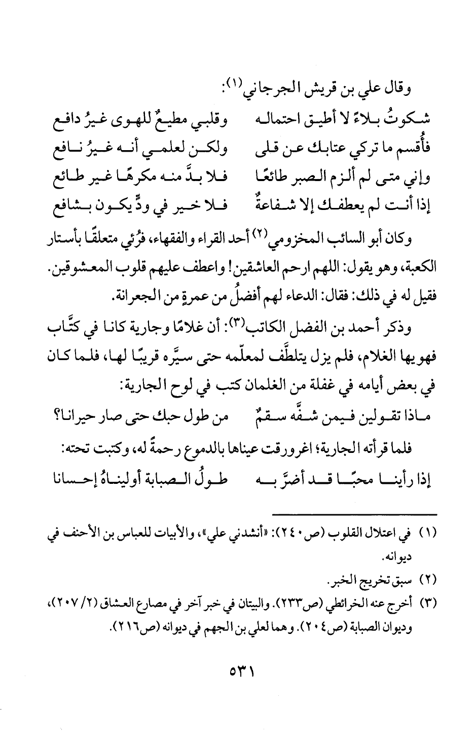 (3) اخرج عنه الخرائطي (ص 233). والبيتان في خبر آخر في مصارع العشاق (2/ 7 0 2)،