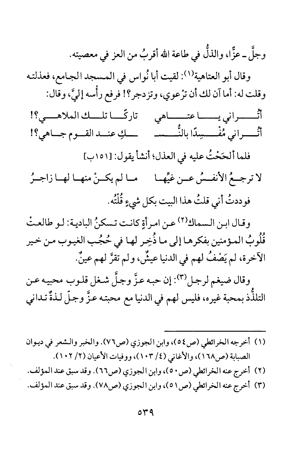 (1) أخرجه الخرائطي (ص 4 5)، وابن ا لجوزي (ص 76). وا لخبر والشعر في ديوان