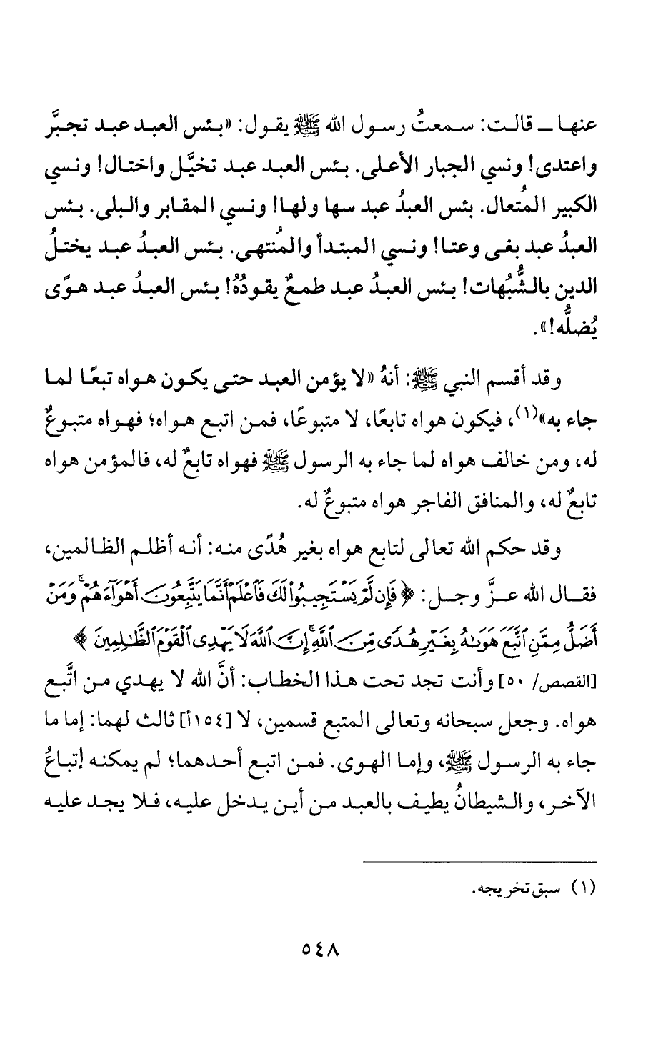 جاء به الرسول! يم، واما الهوى. فمن اتبع أحدهما؛ لم يمكنه إتباع
