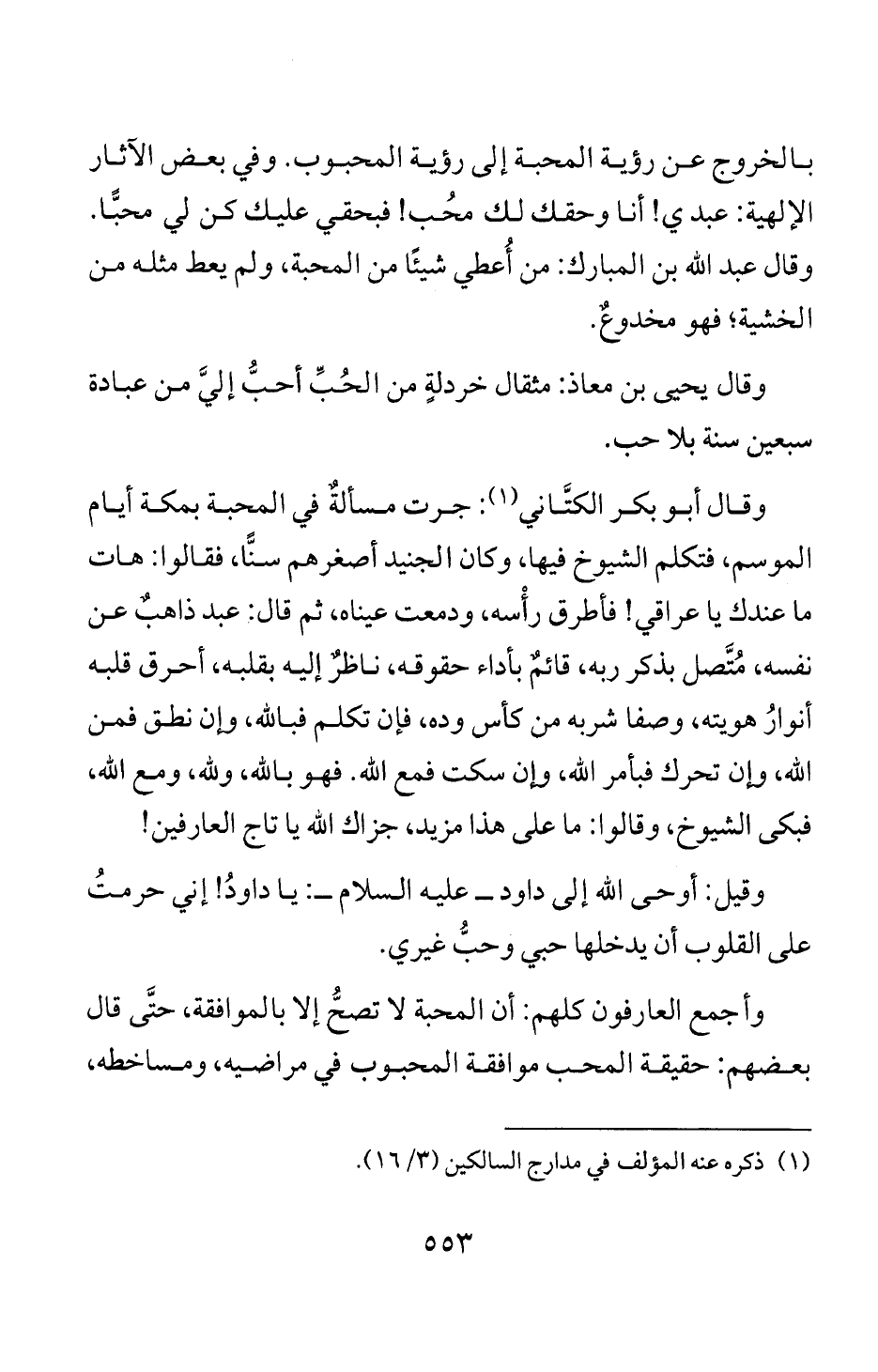 وقال أبو بكر الكتاني (1): جرت مسألهب في المحبة بمكة أيام