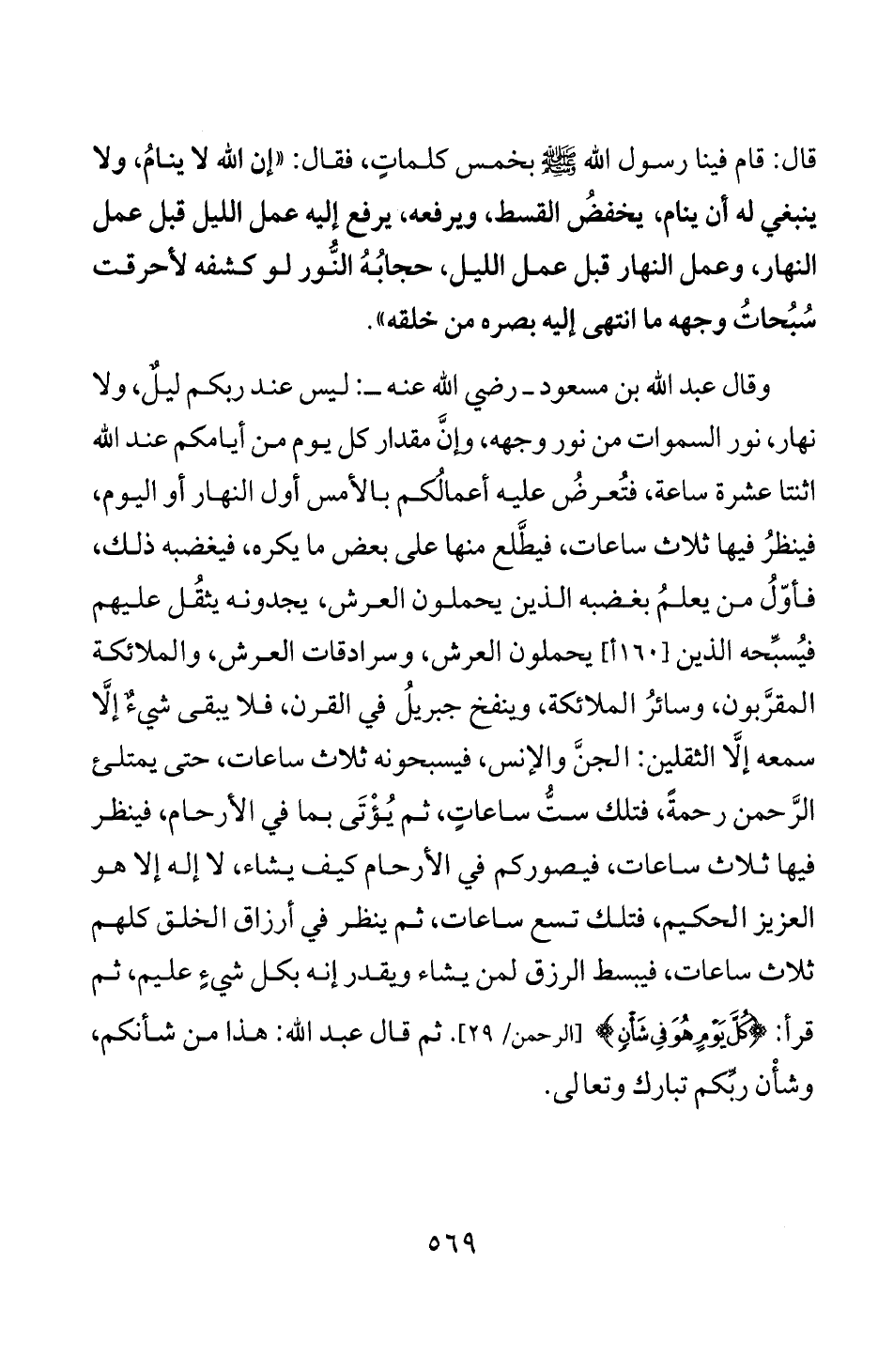 وقال عبد الله بن مسعود - رضي الله عنه -: ليس عند ربكم ليل، ولا