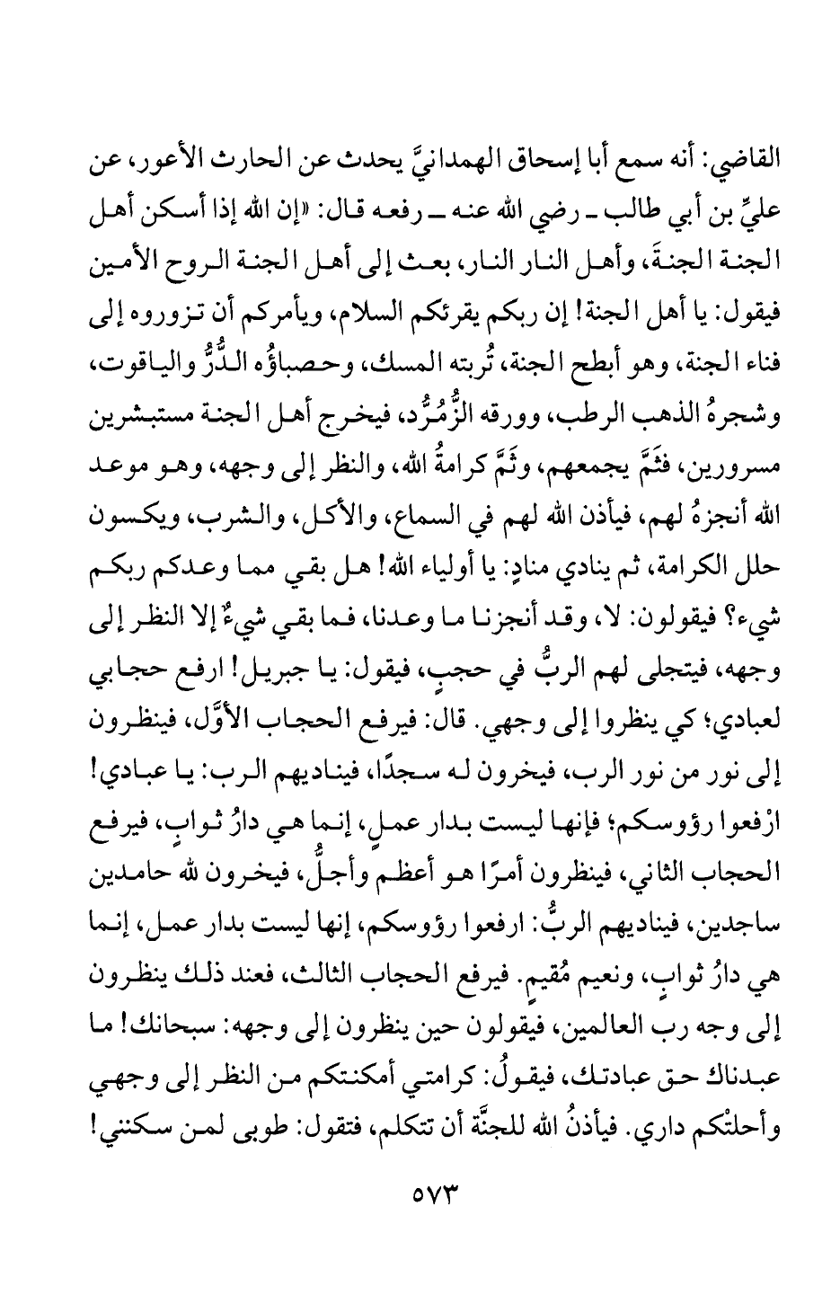 لعبادي؛ كي ينظروا إلى وجهي. قال: فيرفع ا لحجاب الاول، فينظرون