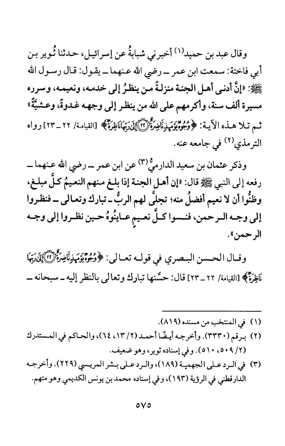 ثم تلا هذه ا لاية: < وصه يومؤناضر"! الىركاناظر!) [القيامة / 2 2 - 23] رواه