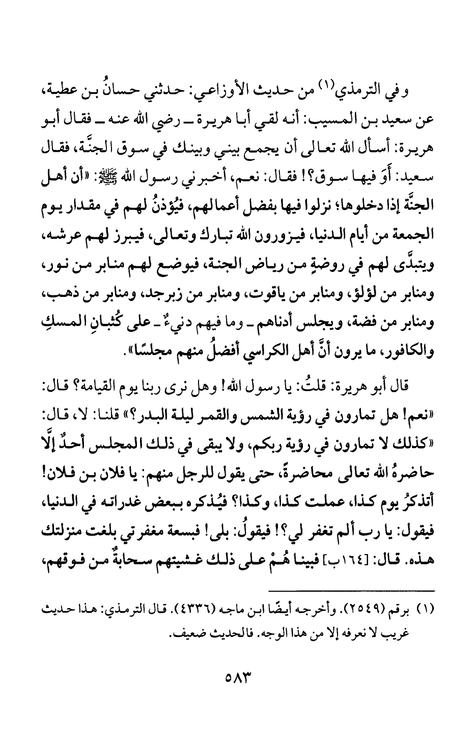 سعيد: أو فيها سوق؟! فقال: نعم، أخيرني رسول الله!: " أن أهل