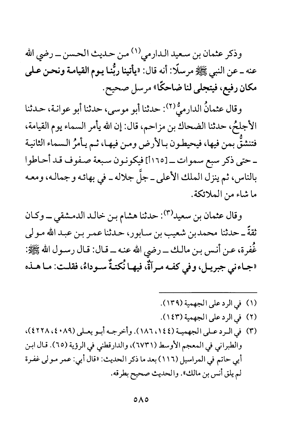 وذكر عثمان بن سعيد الدارمي (1) من حديث الحسن - رضي الله