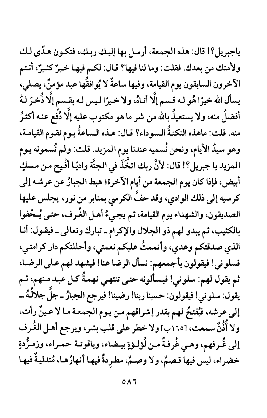 الى عرشه، فيفتح لهم بقدر ا شراقهم من يوم الجمعة ما لا عيق رأت،