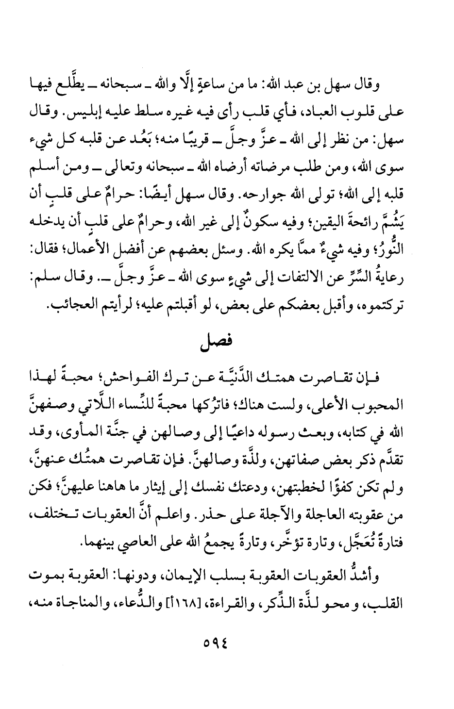 قلبه إلى الله؛ تولى الله جوارحه. وقال سهل ايضا: حرام على قلب ا ن