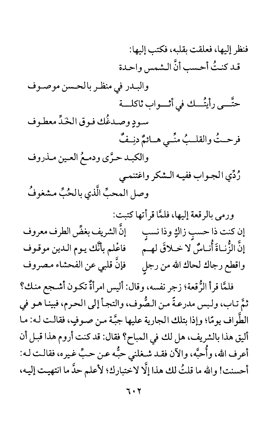 فنطر إليها، فعلقت بقلبه، فكتب إليها: