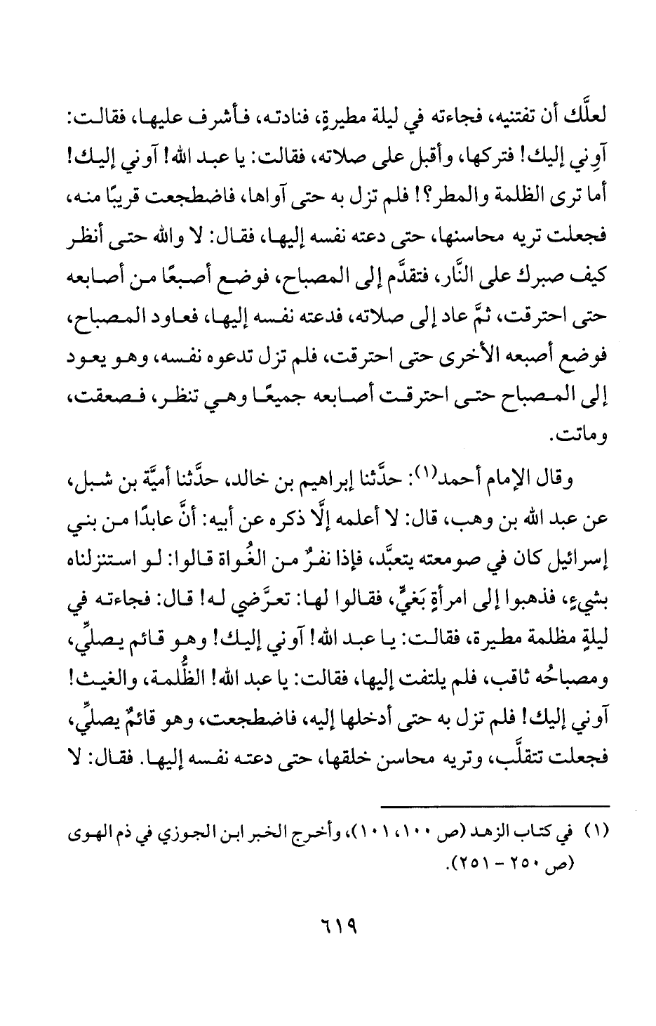 (1) في كتاب الزهد (ص 0 0 1، 1 0 1)، وأخرج 1 لخبر ابن ا لجوزي في ذم الهوى