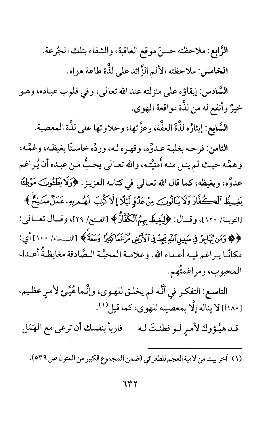 (1) آخر بيت من لامية العجم للطغرائي (ضمن المجموع الكبير من المتون ص 539).