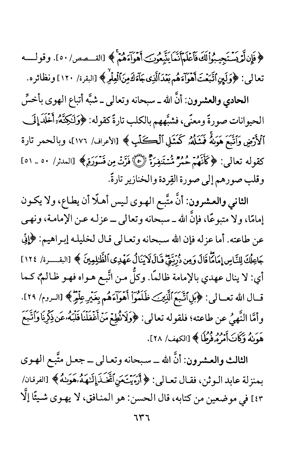 الحادي والعشرون: أن الله - سبحانه وتعالى - شبه أتباع الهوى بأخ! س