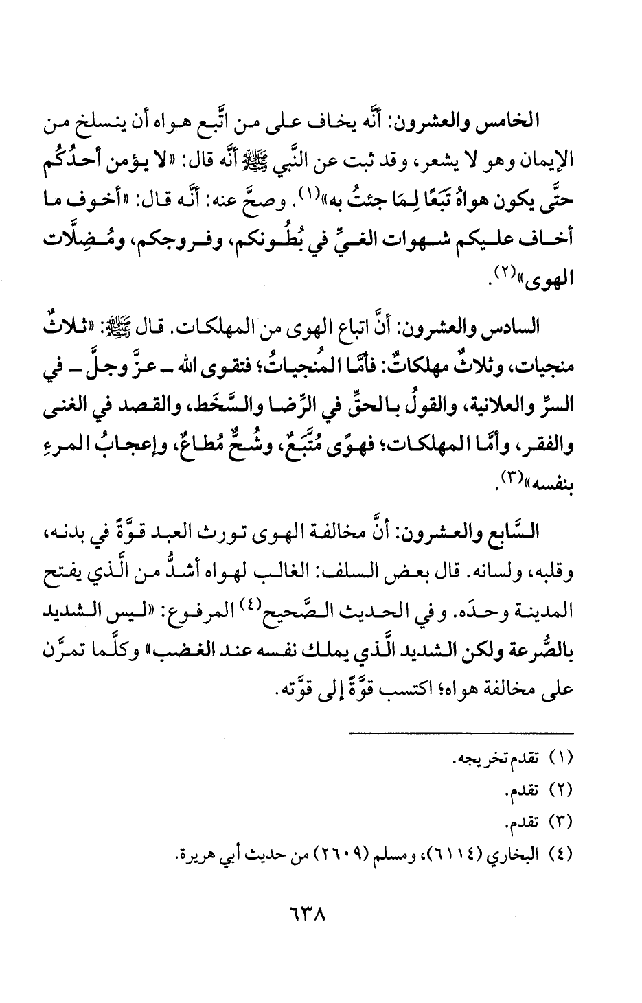 السادس والعشرون: أن اتباع ا لهوى من المهلكات. قال لمجيم: " ثلالث