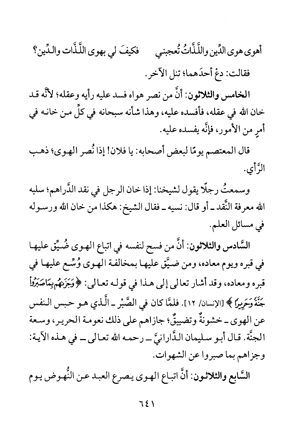 السادس والثلاذون: أن من فسح لنفسه في اتباع الهوى ضيق عليها
