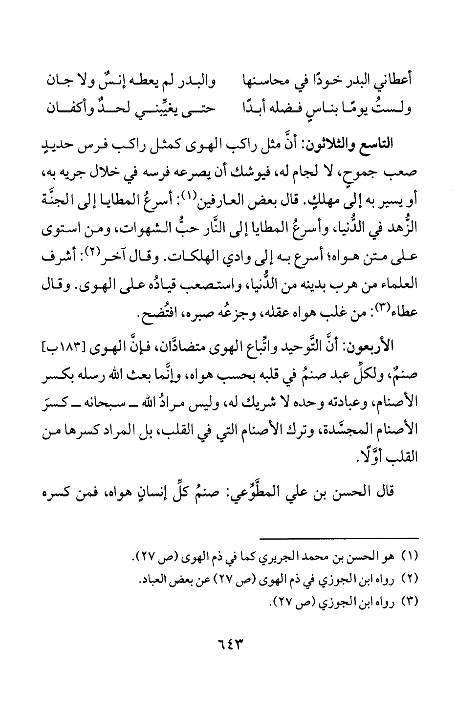 (2) رواه 1 بن ا لجوزي في ذم الهوى (ص 27) عن بعض العباد.
