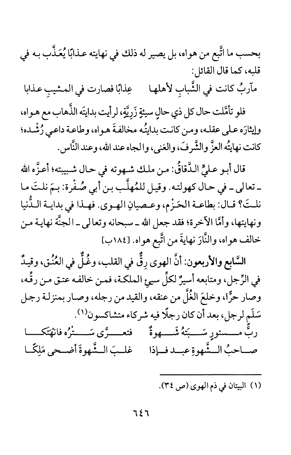 السابع والأربعون: ان ا لهوى رق في القلب، وغل في العنق، وقيد