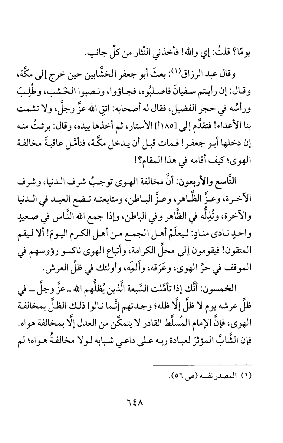 الخمسون: انك إذا تاملت السبعة الذين يطلهم الله - عز وجل - في