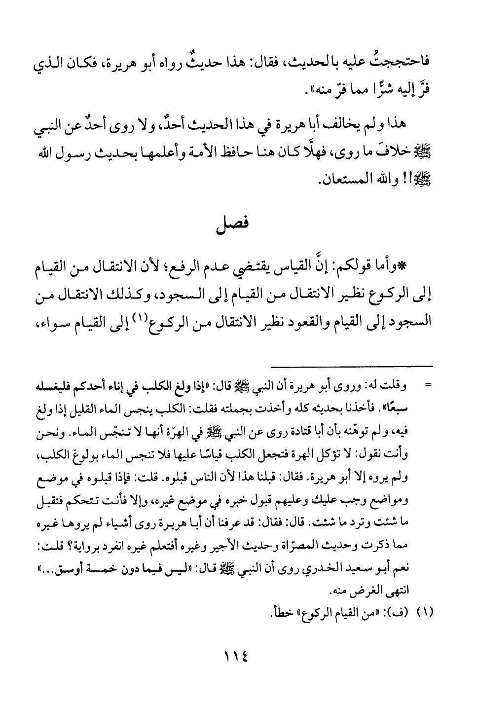 *وأما قولكم: إن القياس يقتضي عدم الرفع؛ لأن الانتقال من القيام