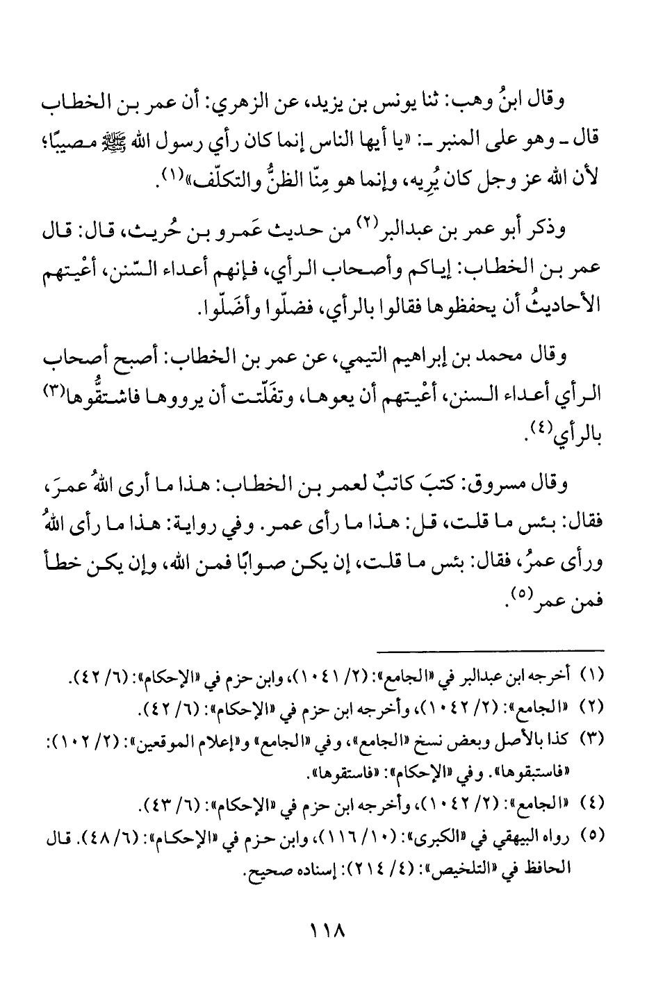(1) اخرجه ابن عبدالبر في "الجامع ": (2/ 1 4 0 1)، وابن حزم في "الإحكام ": (6/ 42).