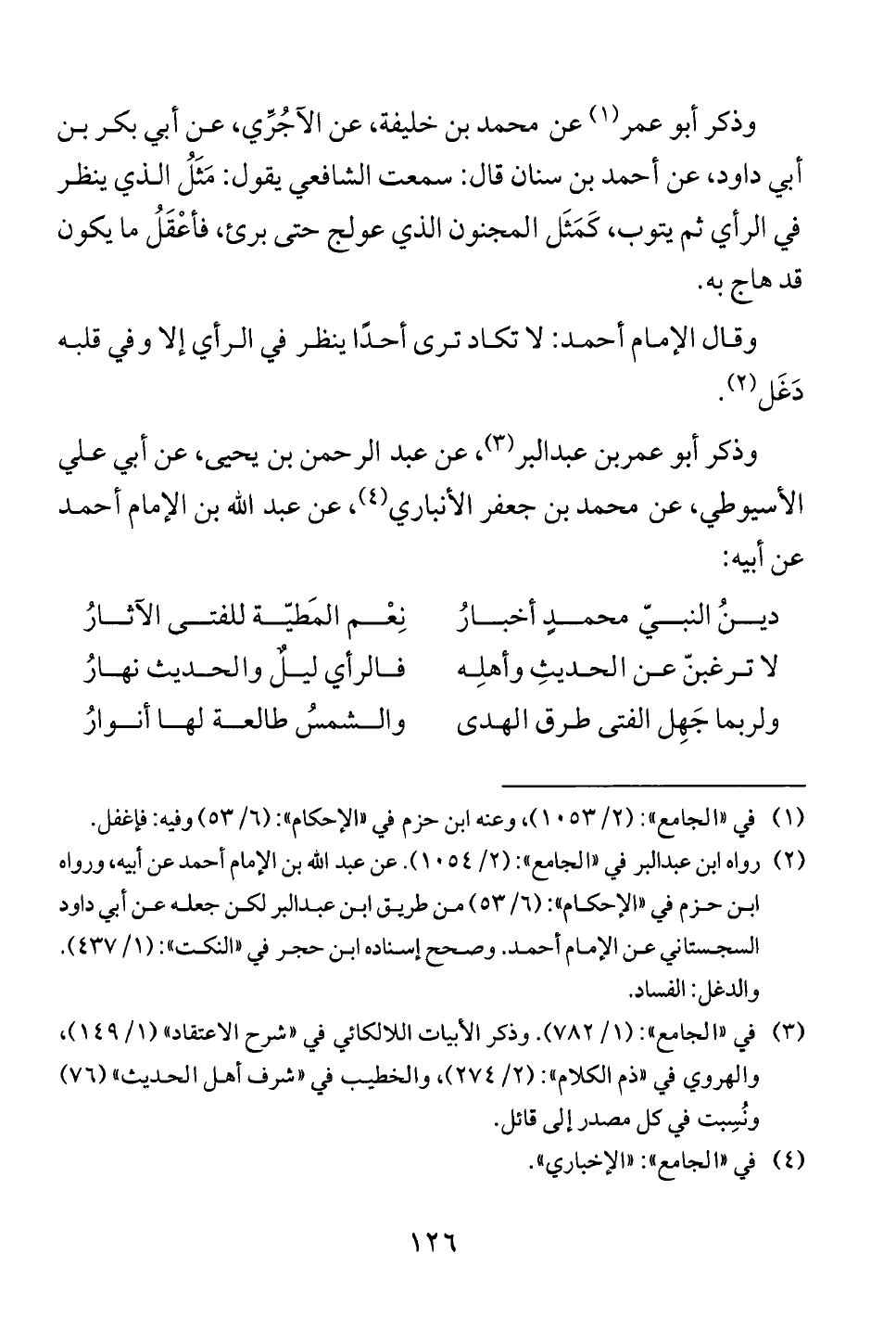 (2) رواه ابن عبدالبر في "ا لجامع ": (2/ 4 5 0 1). عن عبد الله بن الامام أحمد عن أبيه، ورواه