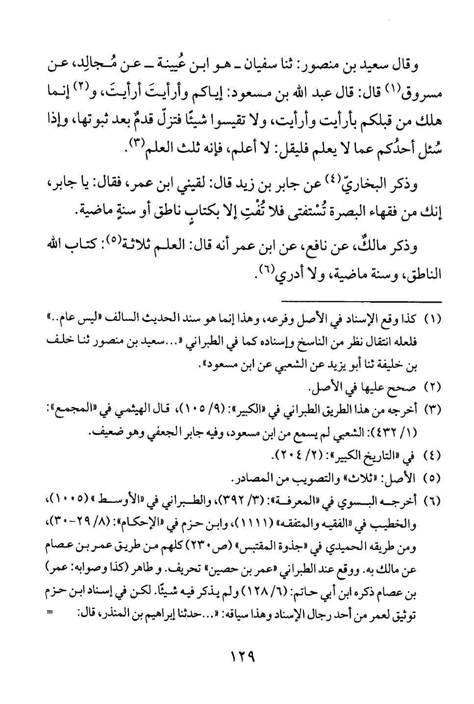 مسروق (1) قال: قال عبد الله بن مسعود: اياكم و رأيت أرأيت، و (2) إنما