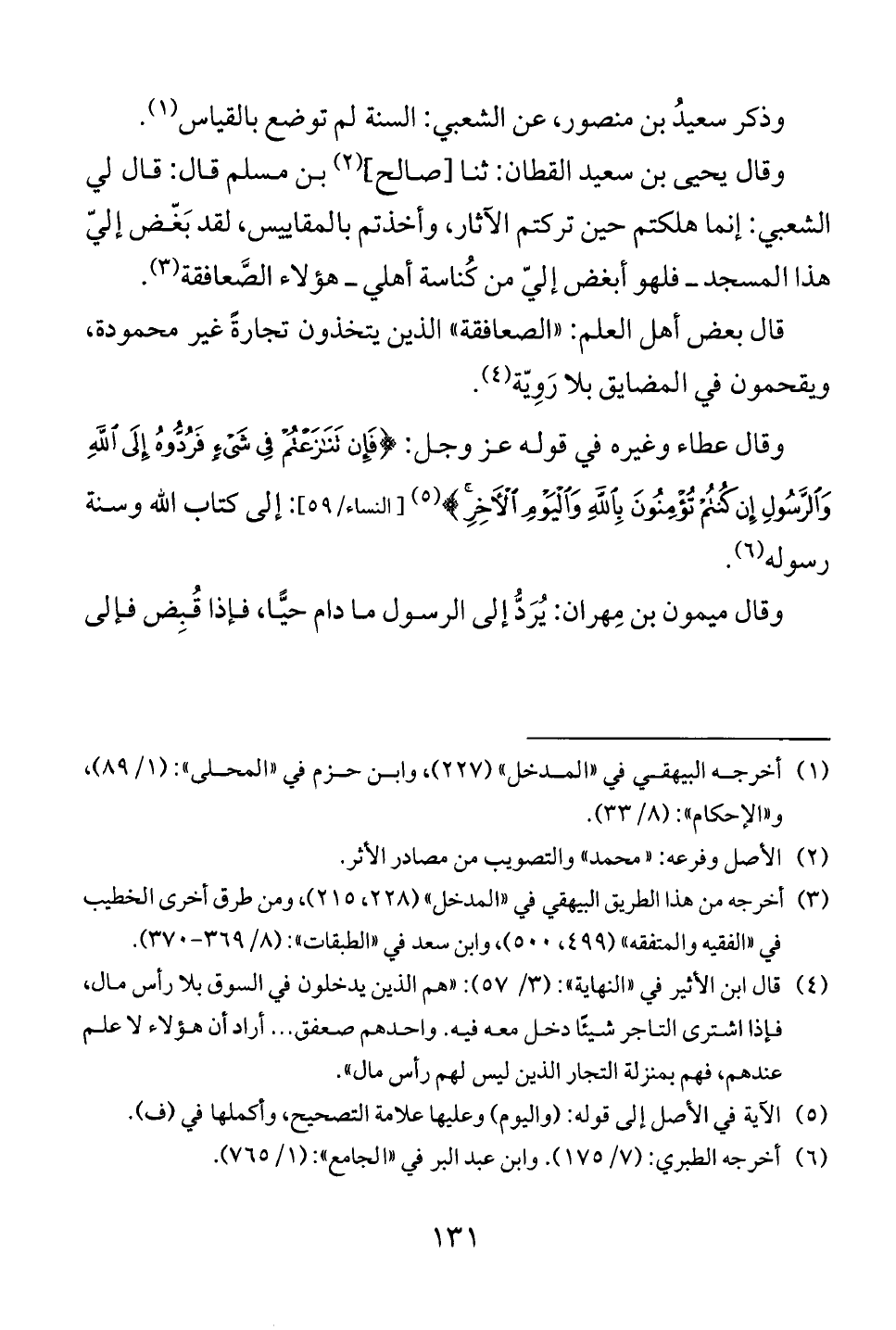 الشعبي: إنما هلكتم حين تركتم الاثار، و خذتم بالمقاييس، لقد بغض إ لي