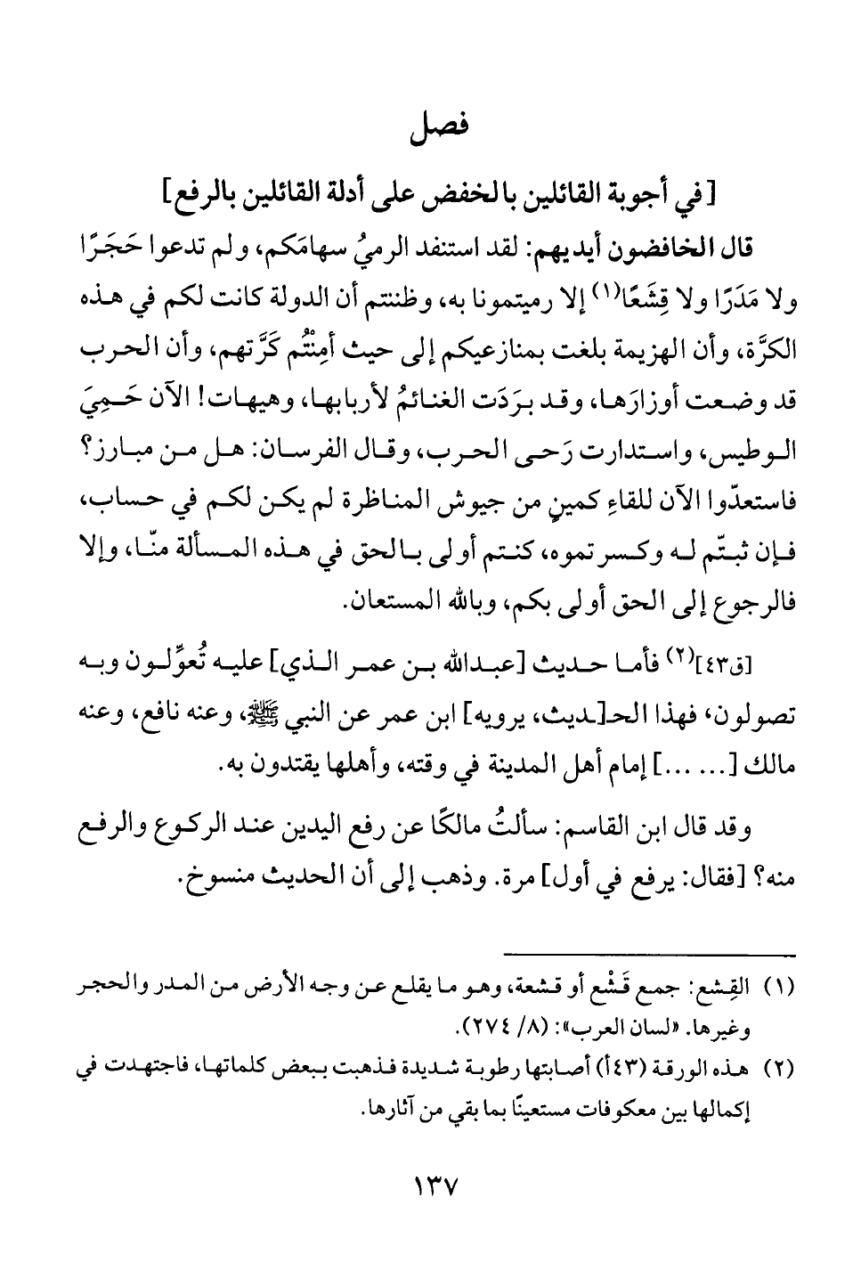 [في اجوبة القائلين با لخفض على ادلة القائلين بالرفع]