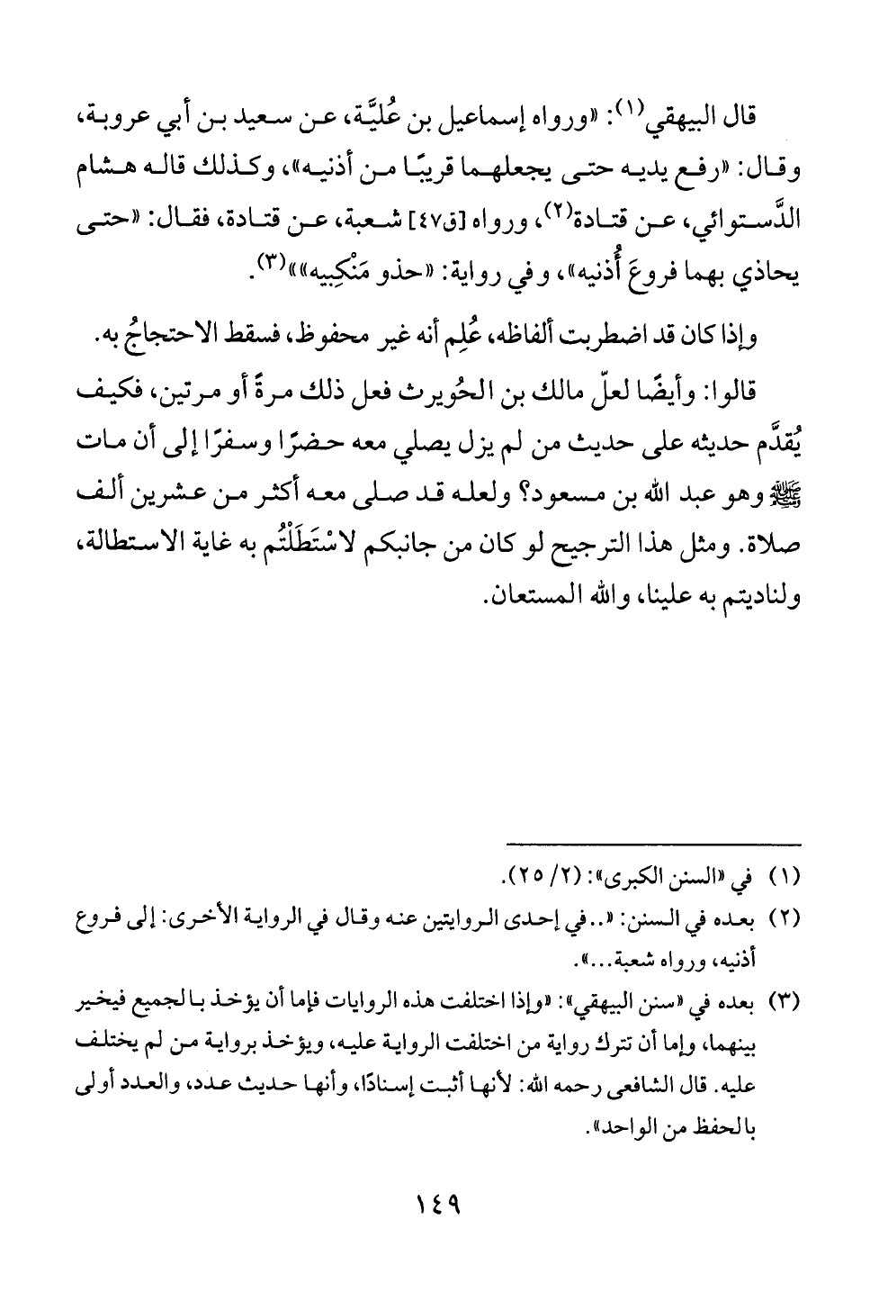 يحاذي بهما فروع أذنيه "، وفي رواية: "حذو منكبيه "" (3).