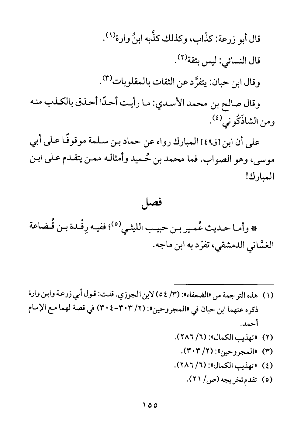 (1) هذه التر جمة من " الضعفاء": (3/ 4 5) لابن ا لجوزي. قلت: قول أبي زرعة وابن وارة