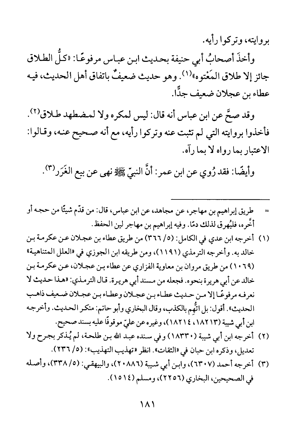 و خذ اصحاب ابي حنيفة بحديث ابن عباس مرفوغا: "كل الطلاق