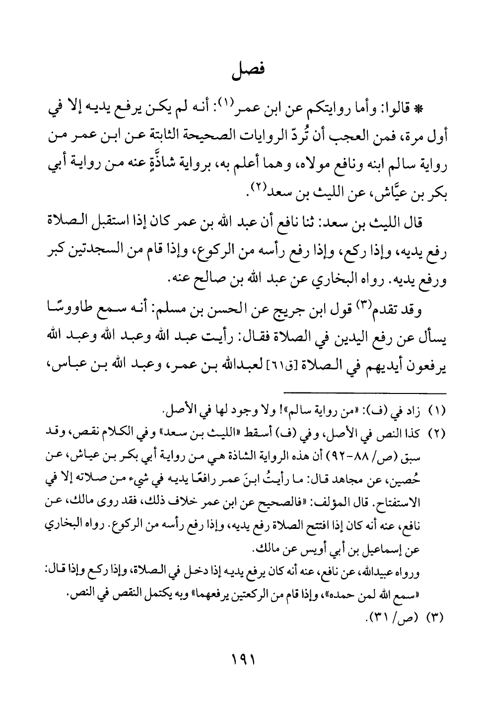 * قالوا: و ما روايتكم عن ابن عمر (1): أنه لم يكن يرفع يديه إلا في