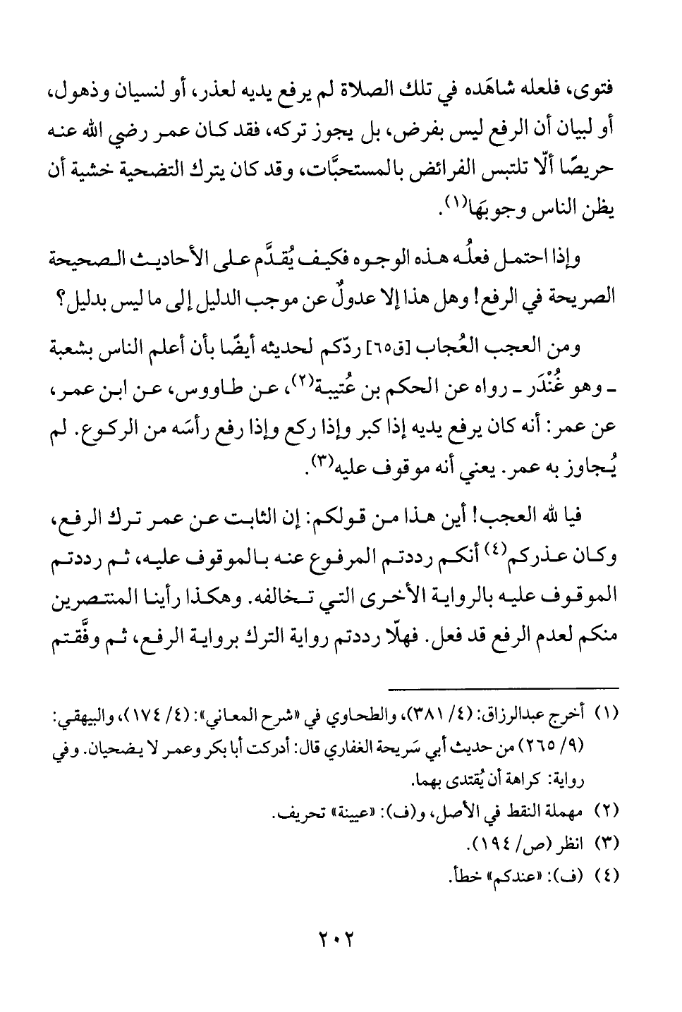فيا دله العجب! أين هذا من قولكم: إن الثابت عن عمر ترك الرفع،