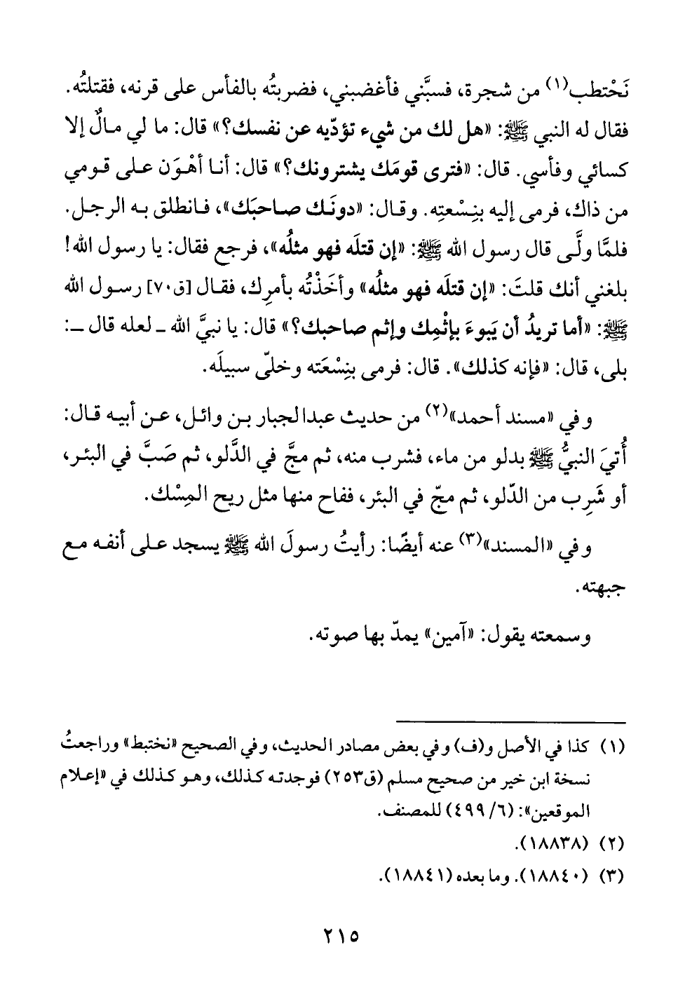 !! يد: " أما تريد أن يبوء بإثمك واثم صاحبك؟ " قال: يا نبي الله - لعله قال -: