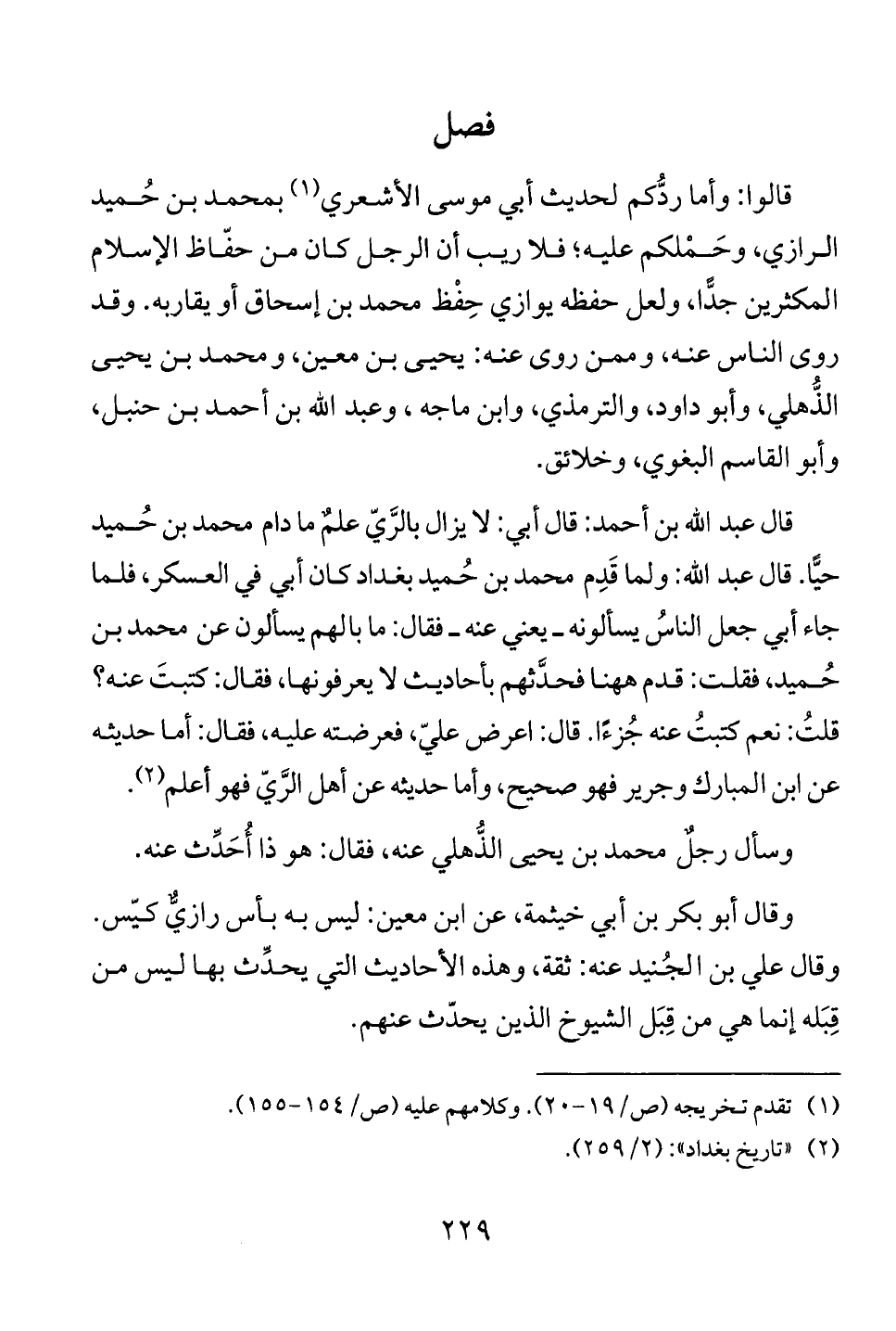 قال عبد الله بن أحمد: قال أبي: لا يزال بالري علم ما دام محمد بن حميد
