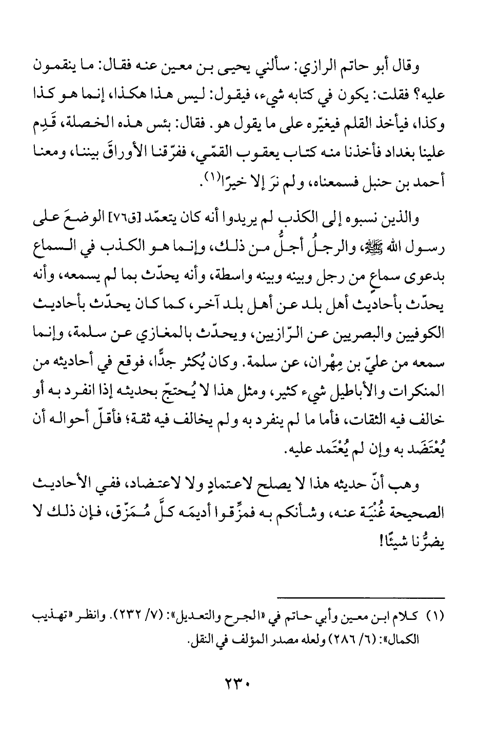 (1) كلام ابن معين و بي حاتم في "ا لجرح والتعديل ": (7/ 232). وانظر " تهذيب