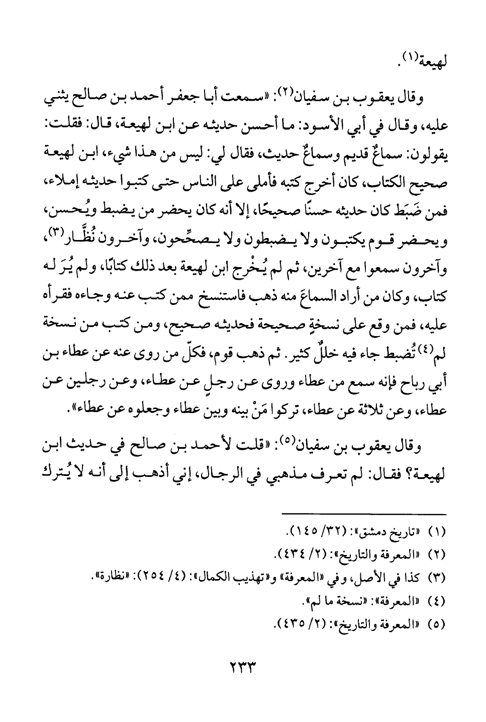 وقال يعقوب بن سفيان (5): " قلت لأحمد بن صالح في حديث ابن