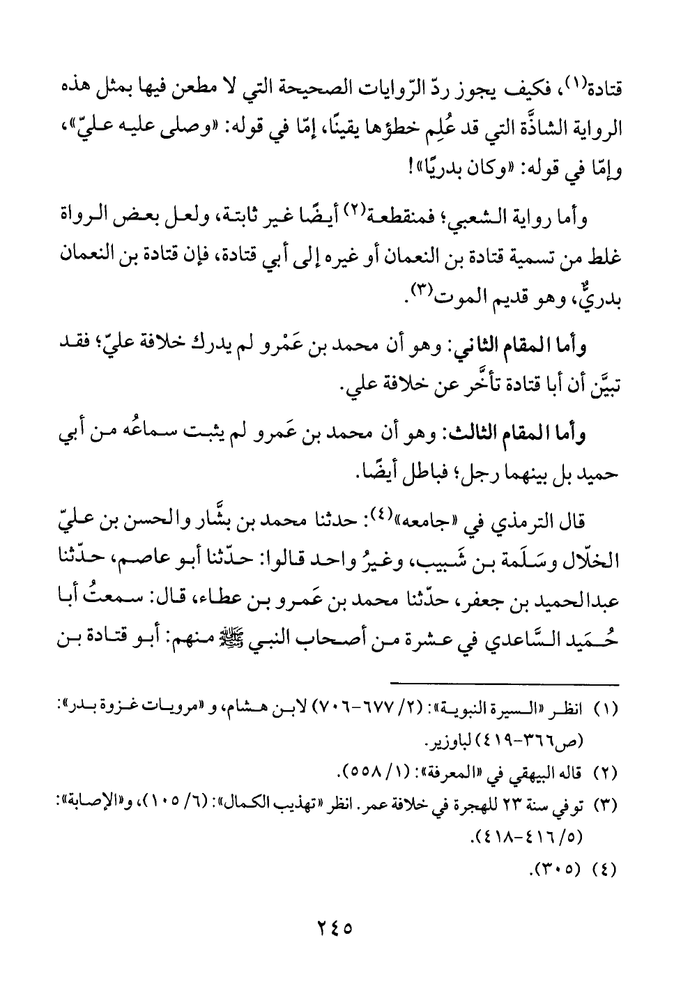 قتادة (1)، فكيف يجوز رد الروايات الصحيحة التي لا مطعن فيها بمثل هذه