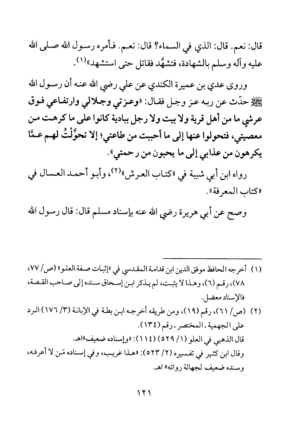 (¬1) أخرجه الحافظ موفق الدين ابن قدامة المقدسي في "إثبات صفة العلو" (ص/ 77، 78)، رقم (6)، وهذا لا يثبت، لم يذكر ابن إسحاق سنده إلى صاحب القصة، فالإسناد معضل.
