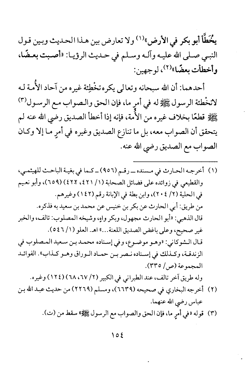 يخُطَّأ أبو بكر في الأرض" (¬1) ولا تعارض بين هذا الحديث وبين قول النبي صلى الله عليه وآله وسلم في حديث الرؤيا: "أصبت بعضًا، وأخطأت بعضًا" (¬2)، لوجهين: