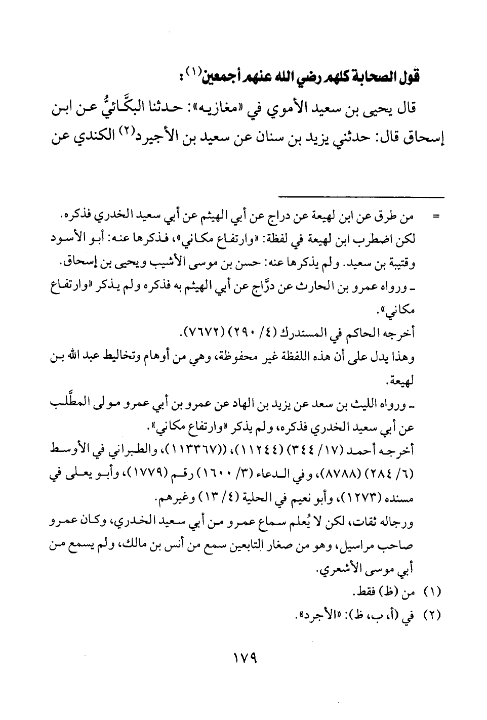 - ورواه الليث بن سعد عن يزيد بن الهاد عن عمرو بن أبي عمرو مولى المطَّلب عن أبي سعيد الخدري فذكره، ولم يذكر "وارتفاع مكاني".