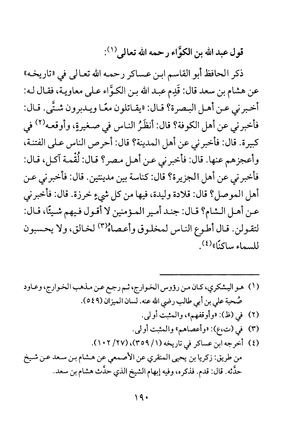 قول عبد الله بن الكوَّاء رحمه الله تعالى (¬1):