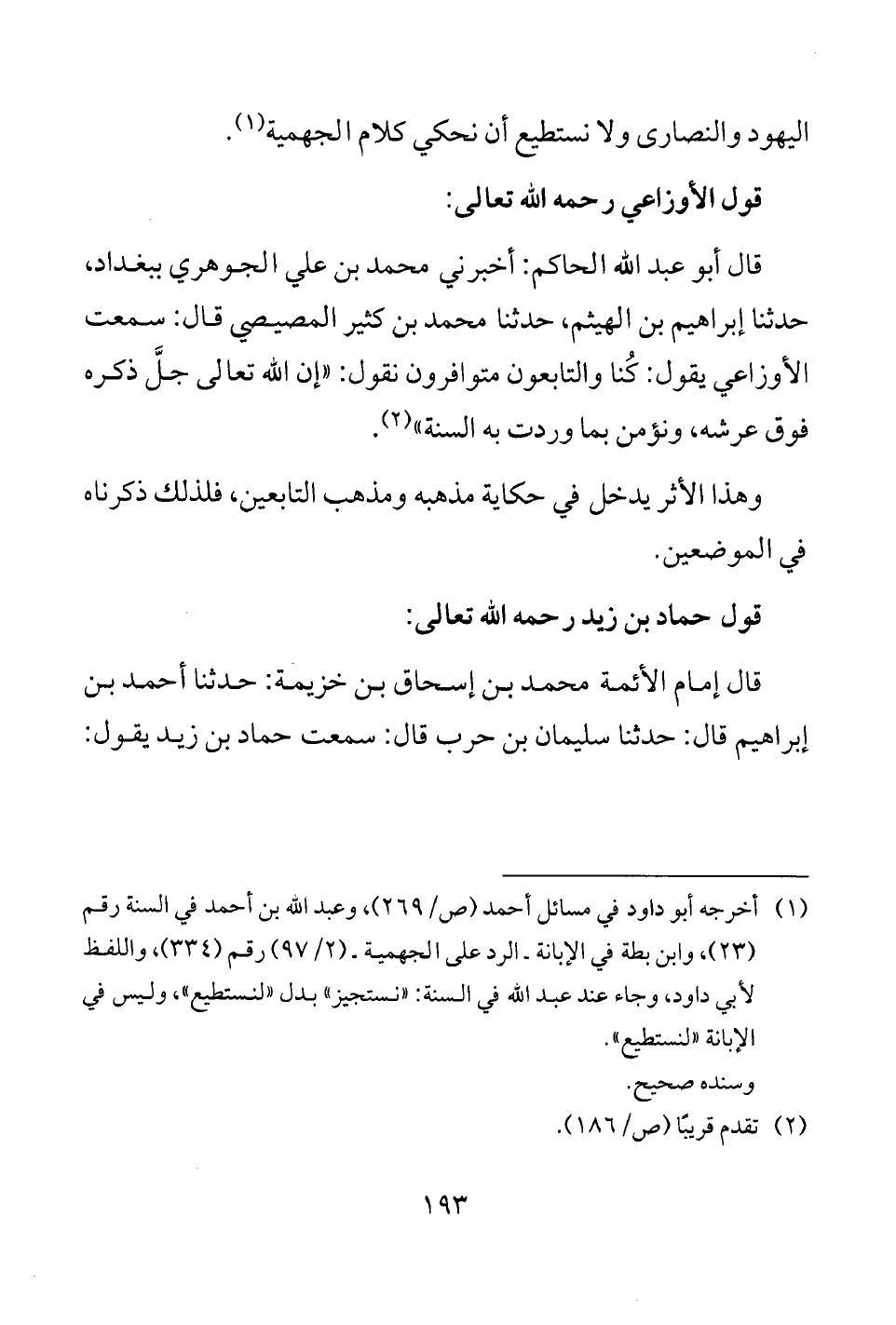 اليهود والنصارى ولا نستطيع أن نحكي كلام الجهمية (¬1).