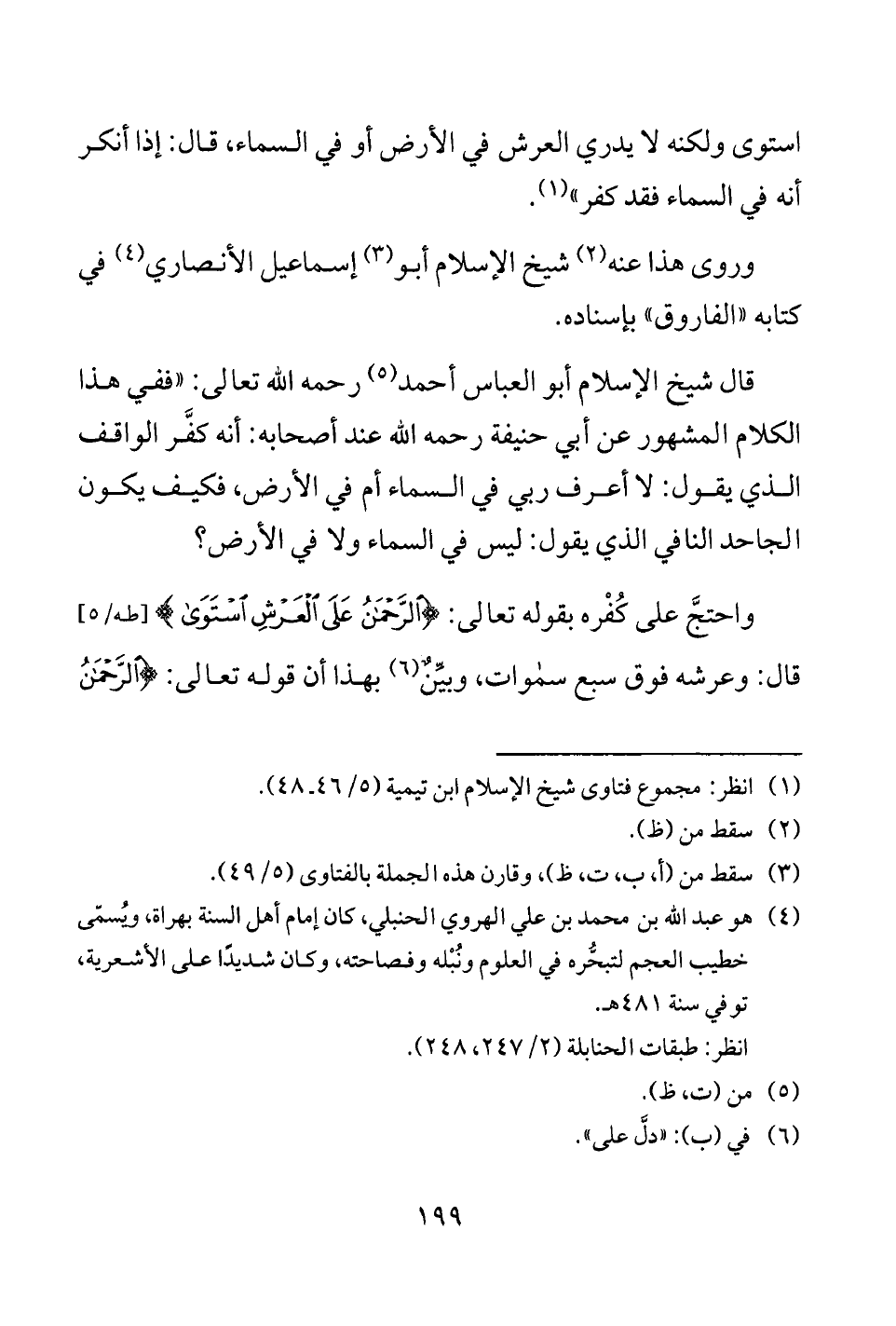 (¬4) هو عبد الله بن محمد بن علي الهروي الحنبلي، كان إمام أهل السنة بهراة، ويُسمَّى خطيب العجم لتبحُّره في العلوم ونُبْله وفصاحته، وكان شديدًا على الأشعرية، توفي سنة 481 هـ.
