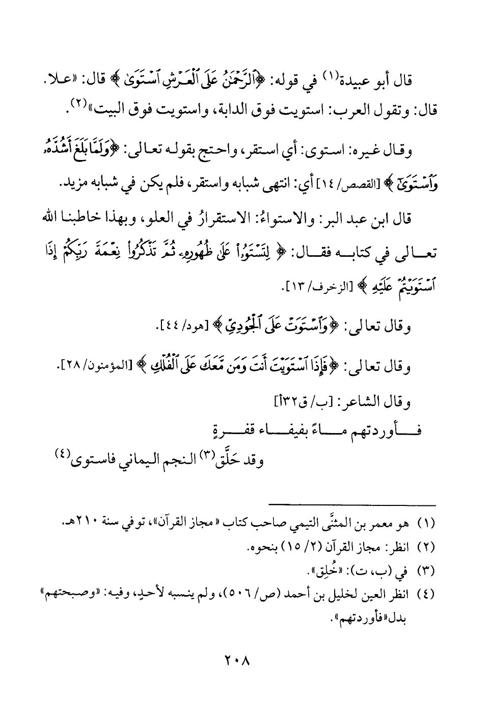 (¬1) هو معمر بن المثنَّى التيمي صاحب كتاب "مجاز القرآن"، توفي سنة 210 هـ.