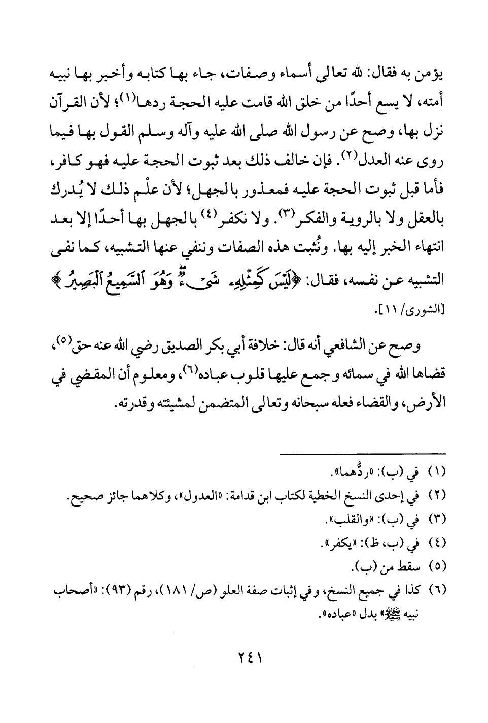 (¬6) كذا في جميع النسخ، وفي إثبات صفة العلو (ص/ 181)، رقم (93): "أصحاب نبيه - صلى الله عليه وسلم -" بدل "عباده".