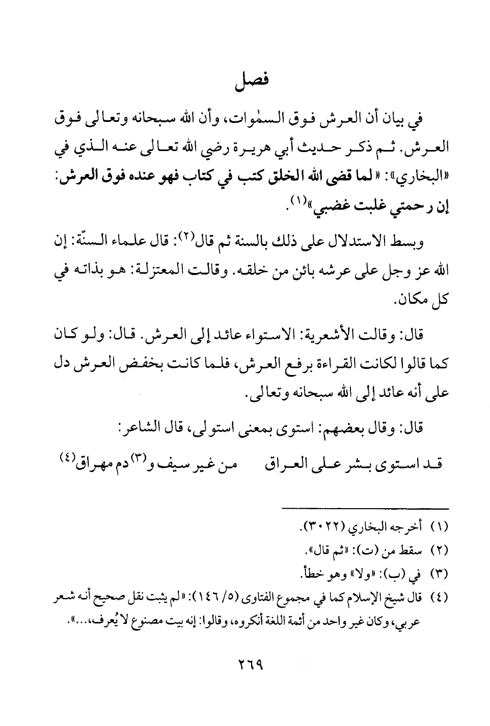 (¬4) قال شيخ الإسلام كما في مجموع الفتاوى (5/ 146): "لم يثبت نقل صحيح أنه شعر عربي، وكان غير واحد من أئمة اللغة أنكروه، وقالوا: إنه بيت مصنوع لا يُعرف، ... ".
