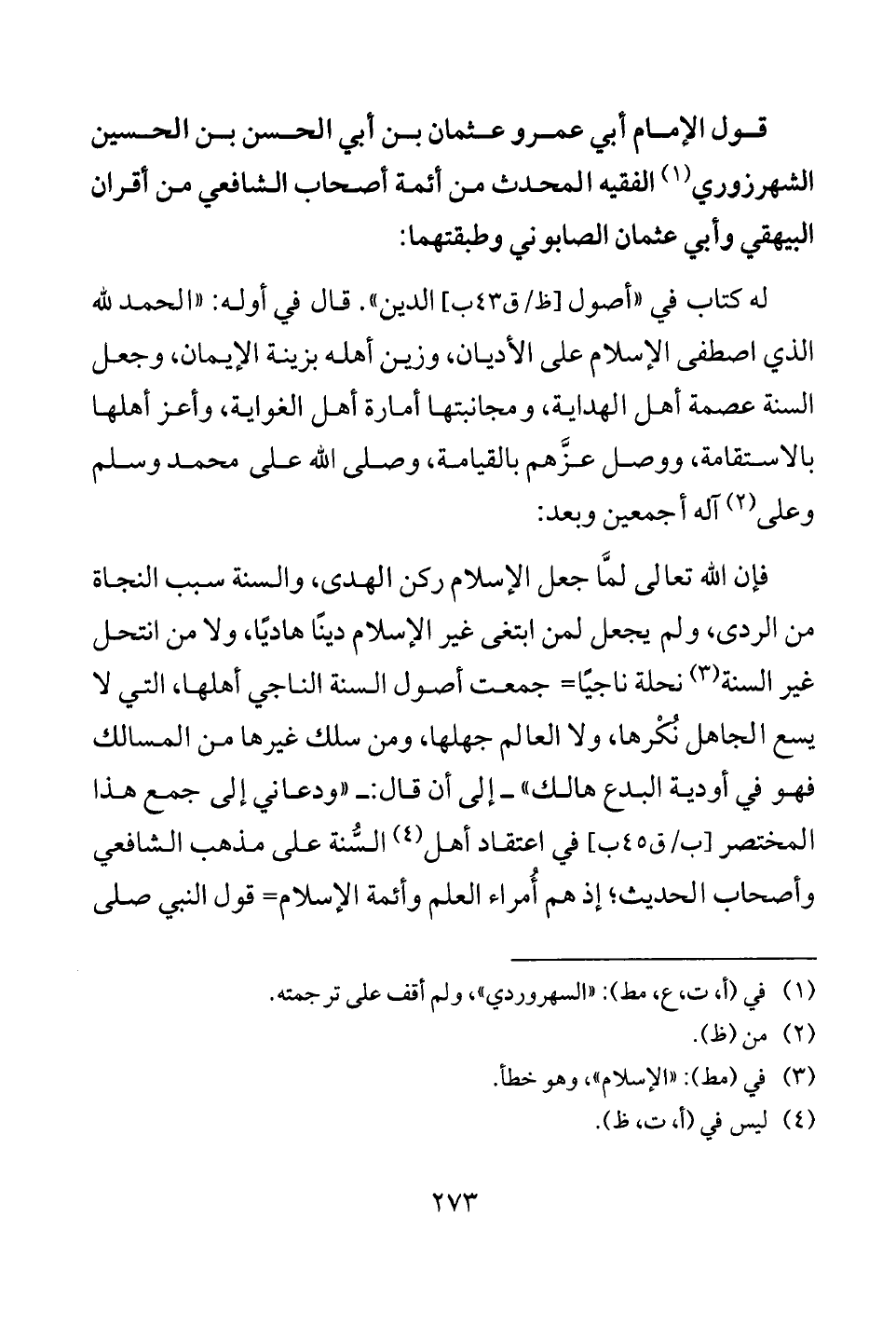 قول الإمام أبي عمرو عثمان بن أبي الحسن بن الحسين الشهرزوري (¬1) الفقيه المحدث من أئمة أصحاب الشافعي من أقران البيهقي وأبي عثمان الصابوني وطبقتهما: