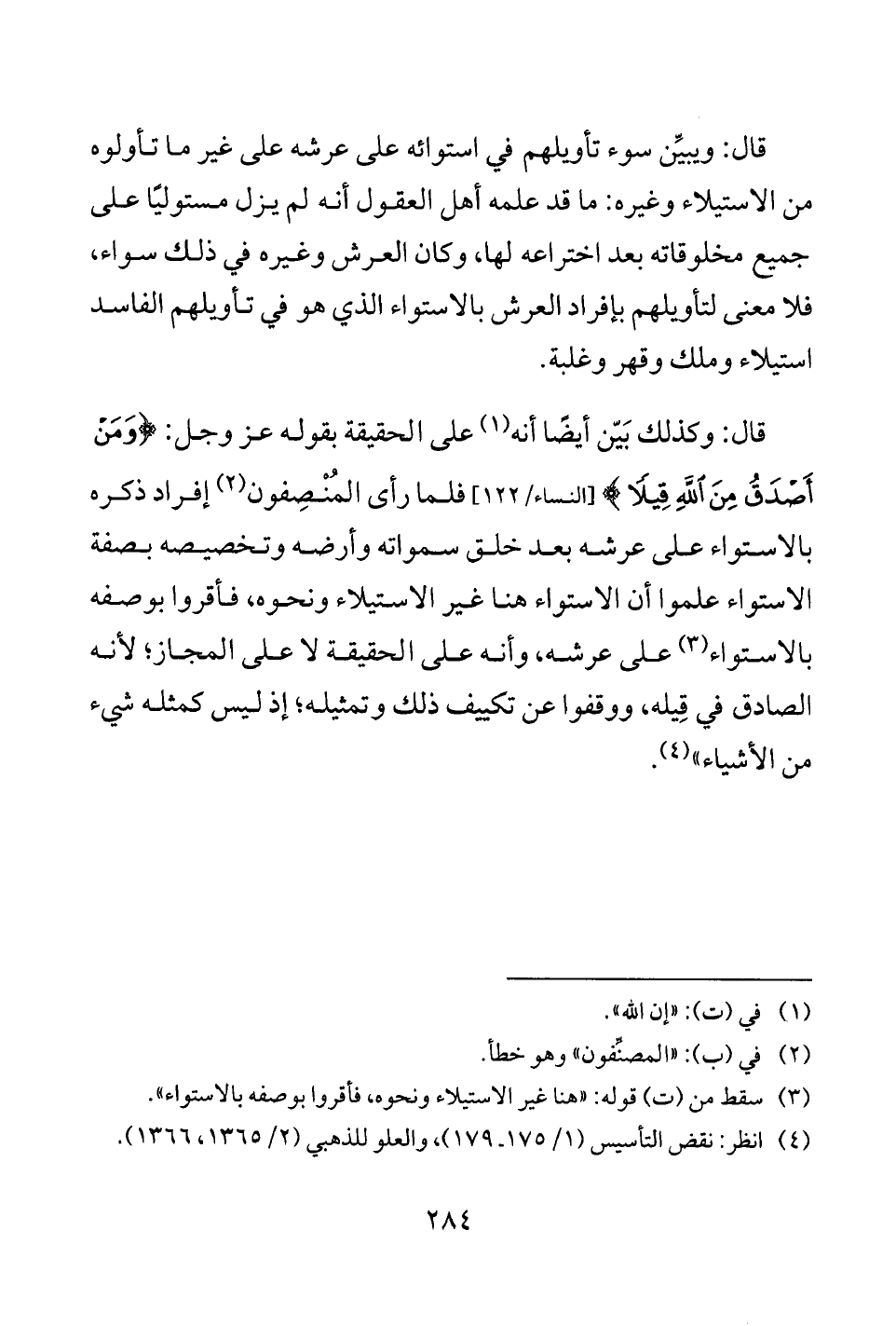 (¬4) انظر: نقض التأسيس (1/ 175 - 179)، والعلو للذهبي (2/ 1365، 1366).