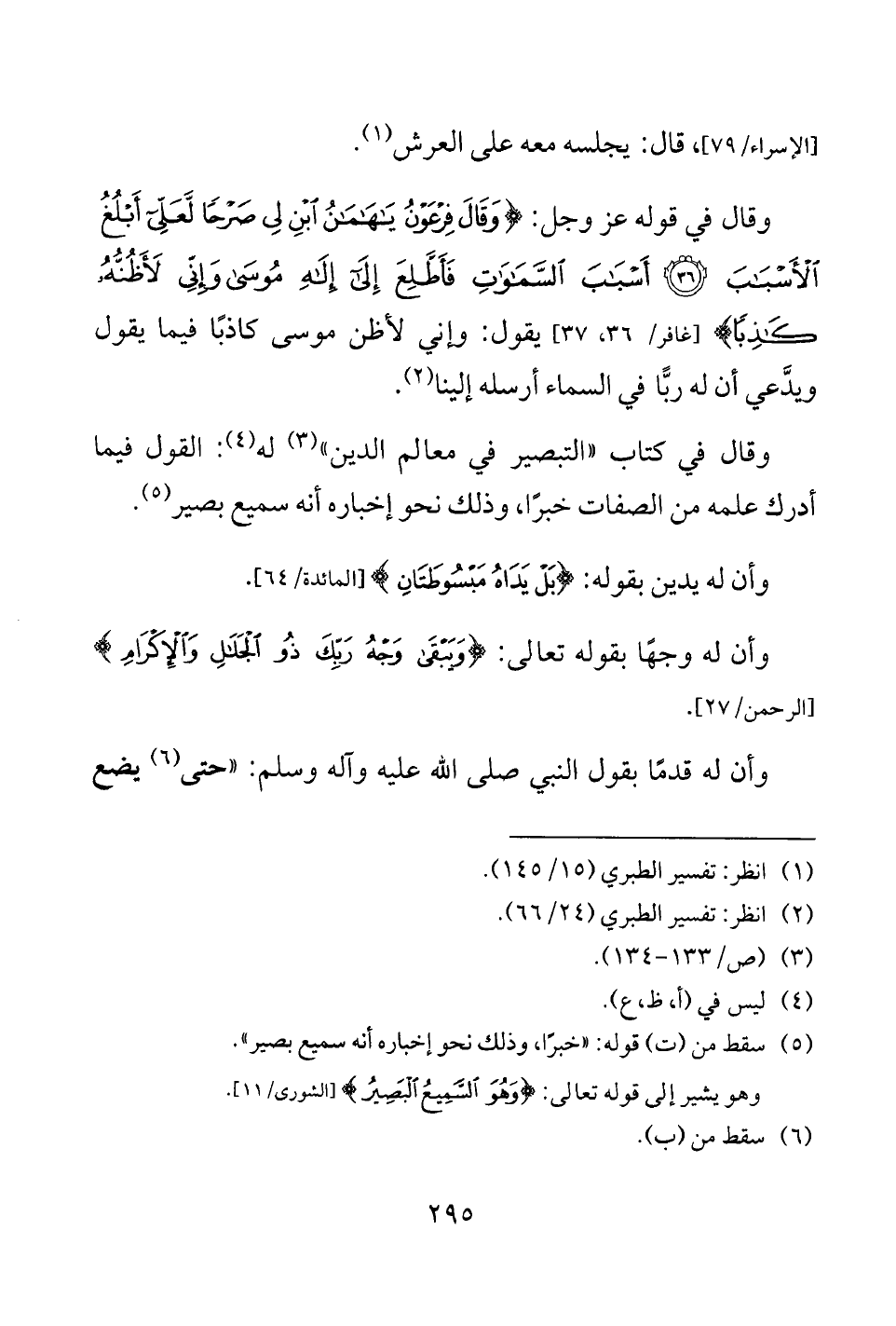 وقال في كتاب "التبصير في معالم الدين" (¬3) له (¬4): القول فيما أدرك علمه من الصفات خبرًا، وذلك نحو إخباره أنه سميع بصير (¬5).