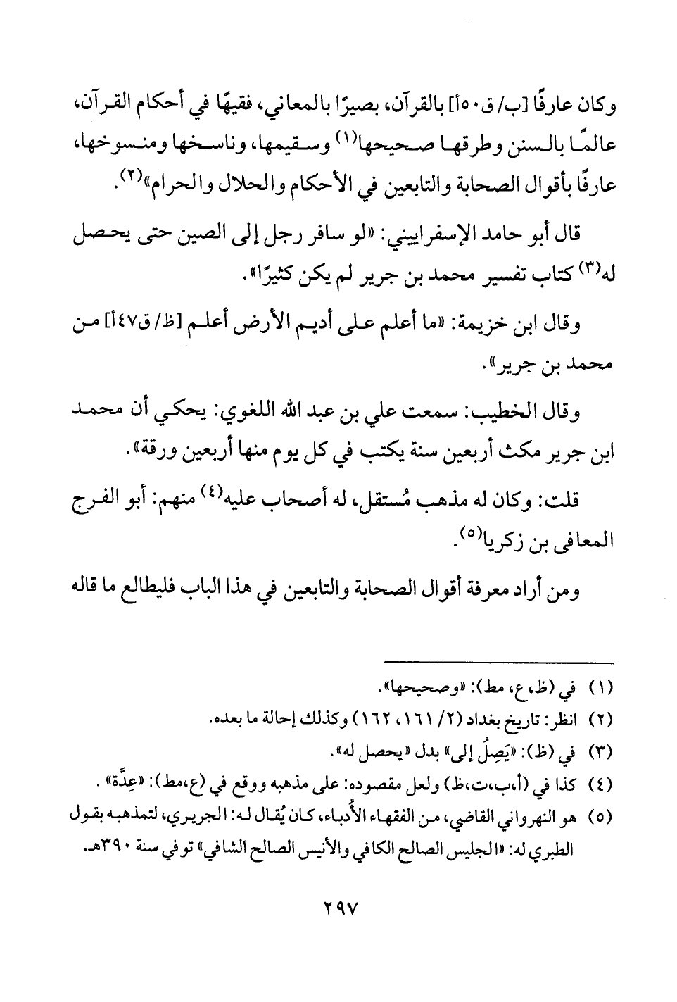 (¬5) هو النهرواني القاضي، من الفقهاء الأُدباء، كان يُقال له: الجريري، لتمذهبه بقول الطبري له: "الجليس الصالح الكافي والأنيس الصالح الشافي" توفي سنة 390 هـ.