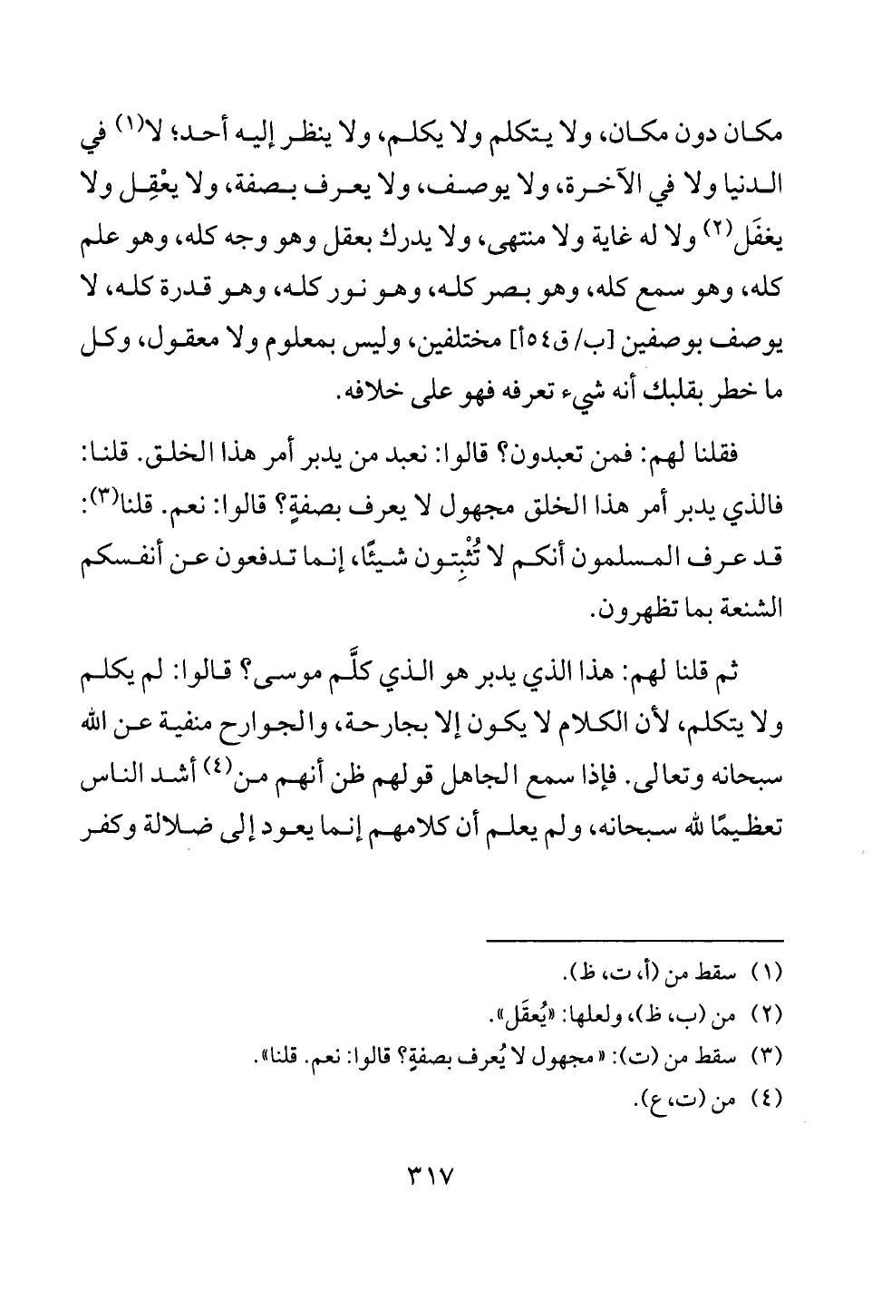 (¬3) سقط من (ت): "مجهول لا يُعرف بصفةٍ؟ قالوا: نعم. قلنا".